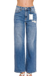 HIGH WAIST STRAIGHT LEG MEDIUM WASH DENIM PANTS