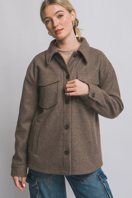 Brown Fleece Button Up Shacket