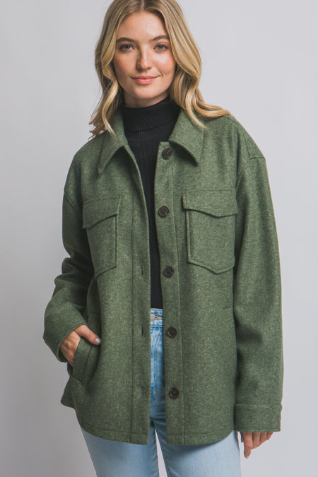Olive Fleece Button Up Shacket