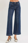 MID RISE CROP WIDE FRONT SEAMED DETAILED JEANS - Rise 9 3/4" | Inseam 27 1/2" in size 3/26 - Model Info: Height 5'8.5" | Waist 24" | Hip 36" - Model is wearing size 1