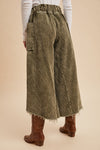 MINERAL WASHED CROPPED FRAY HEM CORDUROY WIDE PANTS