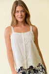 EYELET SCALLOP FRONT BUTTON DOWN LACE STRAP TANK TOP