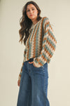 VERTICAL STRIPE DOLMAN SLEEVE TEXTURED SWEATER