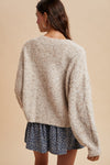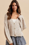 WOOL BLEND V NECK BOUCLE SWEATER CARDIGAN - TEXUTRED WOOL SWEATER - DEEP V NECKLINE - LONG BALLOON SLEEVE - BUTTON FRONT CLOSURE - LOOSE FIT