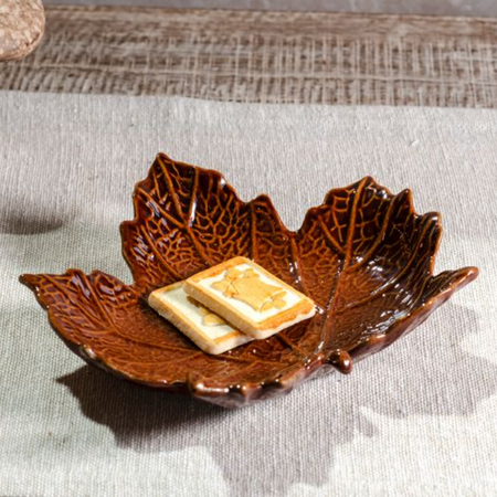 Burnt Brown Leaf Plate 8"