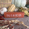 Measurements: 7" W x 2" T x 1" D "Fall Is In The Air" Orange Washed Wood Sitter with White Ink.