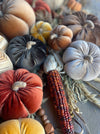 Measurements: 5" W x 3" T Black Velvet Stuffed Pumpkin with Jute Wrapped Stem