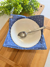 Save your hands from the heat or cold with our NEWEST microwave safe bowl cozy. This is the perfect partner for heating up your bowl of soup or dress up last night's leftovers or your favorite cold treat. Beautiful contrasting rust and aqua birds are sure to make those leftovers or ice cream taste better * Microwave safe * Machine washable on cold; air dry * Holds a normal size bowl * Keeps your hands safe when holding your warm or cold bowl of yummy goodness * Use as a cute basket in your kitchen when not in use Approximately 7" across and 2" deep. Items are ready to ship.