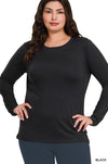 PLUS BRUSHED MICROFIBER LONG SLEEVE ROUND NECK TEE - BUTTERY SOFT - WARM - PERFECT STRETCH & RECOVERY TOTAL BODY LENGTH: 27", BUST: 41" approx. - MEASURE FROM 1X * COLOR MAY VARY SLIGHTLY DUE TO MONITOR RESOLUTION