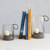 5-1/4"L x 4"W x 5"H Recycled Seeded Glass Hurricane w/ Metal Votive Holder, Black