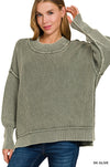 WASHED SIDE SLIT OVERSIZED SWEATER
