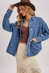 Denim Button Down Shacket w/ Pockets