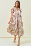 PAISLEY PRINT RUFFLE SLEEVE SPLIT NECK TIERED MIDI DRESS - Paisley print midi dress with a flattering, relaxed silhouette - Tiered skirt design creates movement and flow - Split neckline offers a touch of elegance - Feminine ruffle sleeves add a soft, stylish detail STYLE MEASUREMENTS (SIZE SMALL) -Total Length 48" -Shoulder 12" -Bust 19" -Waist 19 1/2" -Hip 28" 100%POLYESTER | LINING:100%POLYESTER MODEL IS 5'10" | BUST 34" | WAIST 24" | HIPS 35" WEARING SIZE S
