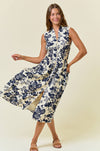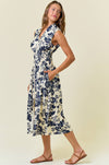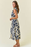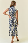 Navy & Ivory Paisley Smocked Waist Zip Front Midi Dress