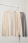 OPEN FRONT - EXTENDED SHOULDERS - LONG SLEEVES, CUFFED - RAW EDGE DETAIL - 97% POLYESTER 3% SPANDEX