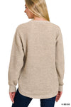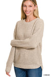 Heather Beige Hi-low Long Sleeve Round Neck Waffle Sweater